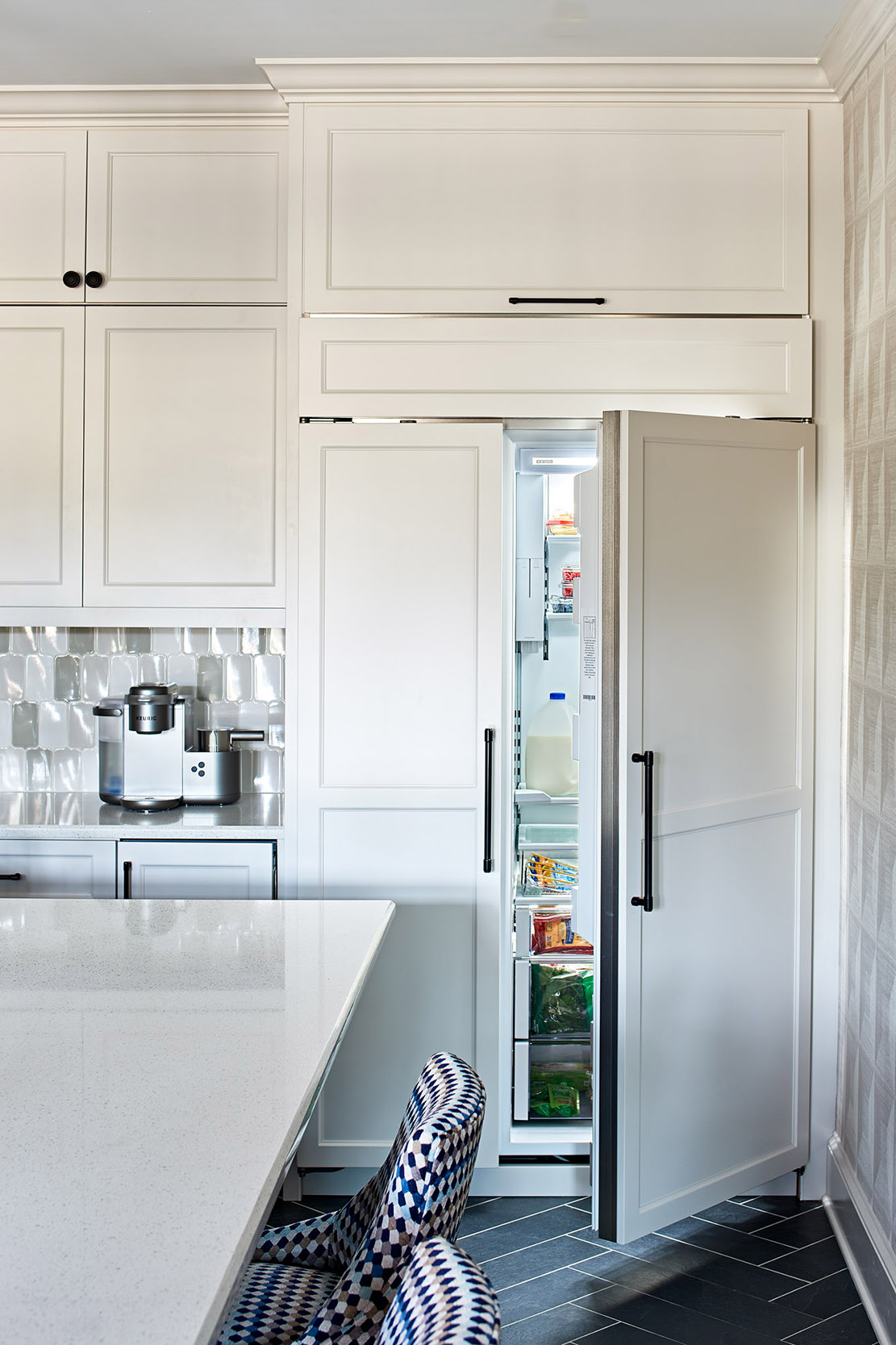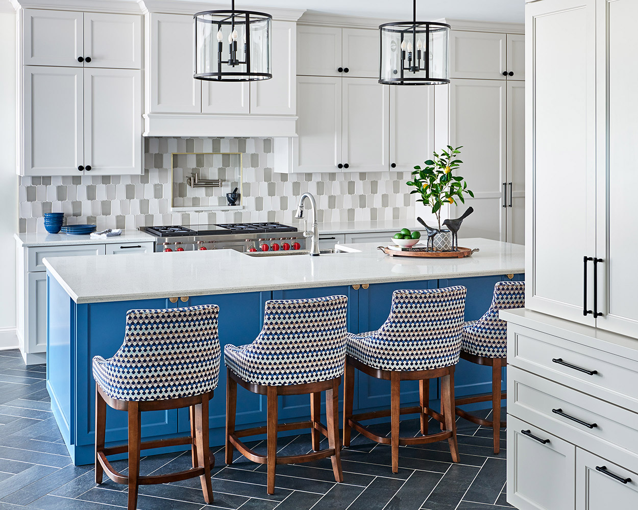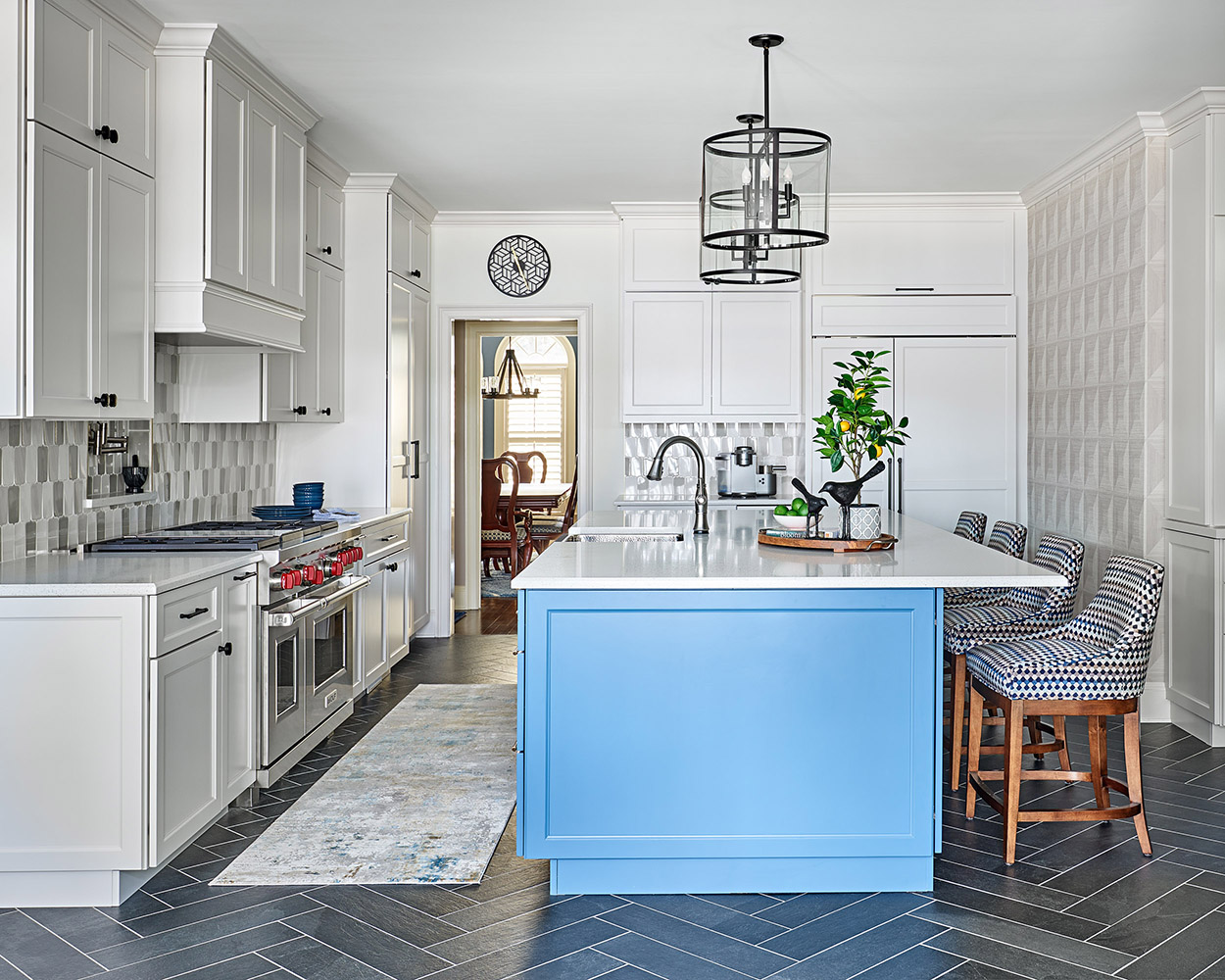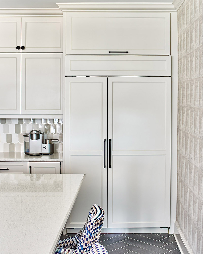 This Lake Norman kitchen remodel started with a vision: better flow, smarter function, and a splash of personality. We delivered all that—and more. A custom paneled refrigerator blends seamlessly into the cabinetry, while a bold blue island brings energy and contrast to the space. We added a pot filler over the range, streamlined the layout, and built in thoughtful storage throughout. Off the kitchen, a new mudroom features built-ins, integrated drawers, and a bench seat that’s as practical as it is polished.
